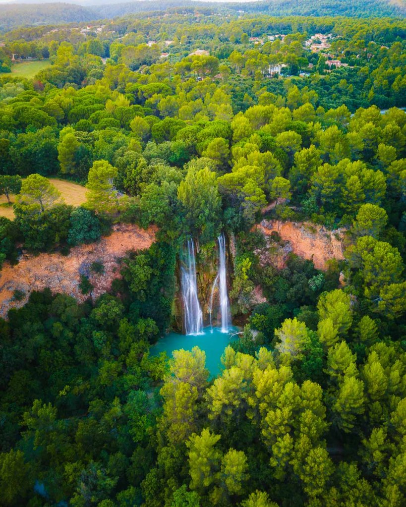 Sillans la Cascade is a small town in the South of France, famous mostly for its fantastic 42 meters high waterfall. The waterfall is located 10 minutes away from the village. When you get in Sillans la Cascade, try to park your car next to the school where you’ll find the start of the trail that leads to the waterfall. From the parking lot, head to the school, and keep right at the fork. The path is named “Le Cour”. Follow it all the way to the end, and you’ll end up on a nice viewing platform, right in front of the waterfall.